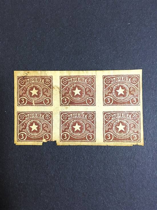 在战争岁月,苏区邮票几乎全部使用陈旧的石印机设备,并无凸版、雕刻版、影写版和胶版,也没有齿孔、背胶的工艺使用,更无版别和配色的书面记载。所用纸张基本是土纸、原墨纸、黄色条纹纸、木纹土纸、黑纸、报纸、黑土纸、白纸等纸型。