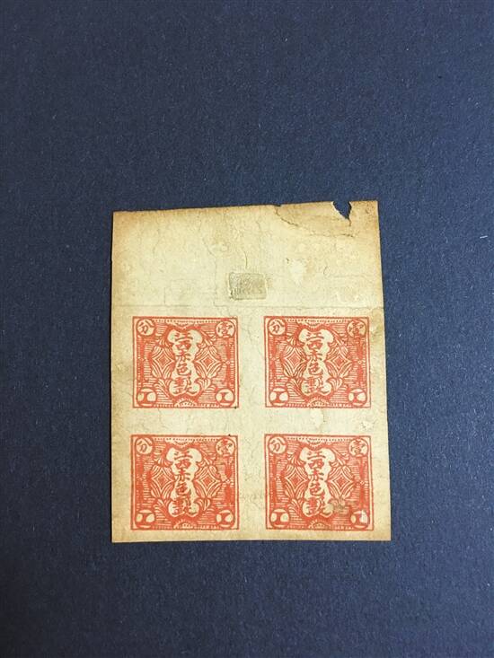 王华新:如果说中国解放区邮票是中国邮票之瑰宝,那苏区邮票作为中国解放区邮票的鼻祖,可称之为中国邮票的宝中之宝。因当年在江西、福建和中央苏区,百姓习惯把税票称为印花,而称邮票为“邮花”,如著名的苏区珍邮“闽西赤色邮花”。清代税票“红印花”是清代邮票的瑰宝,而“苏区邮票”称之为“红邮花”当之无愧,它们若在世展上同时亮相可谓“双雄会”。