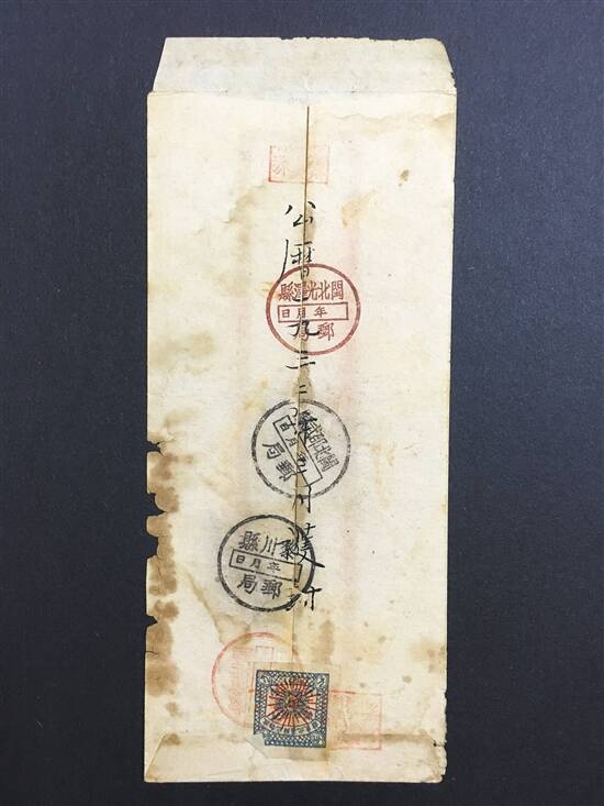 正面(左)背面(右),苏区赣东北省闽北邮政四分邮票实寄封
