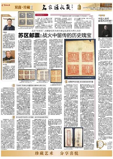 苏区邮票作为本版“红色藏品系列”中率先介绍的珍贵收藏品类,兼具历史性、政治性和珍罕性,但由于涉及这段历史的相关文献和实物大多湮灭于战火,资料缺乏,国内对苏区邮票有深入研究的邮人并不多,它的真正价值也正在不断被深入挖掘。幸运的是,40多年来,苏区邮票已逐套逐枚地被世界集邮人士调研鉴别,并公诸展览。
