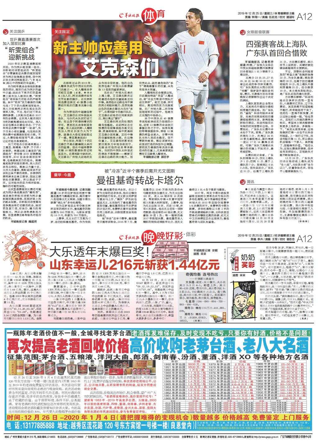 第A12G版:体育;晚晚好彩·体彩