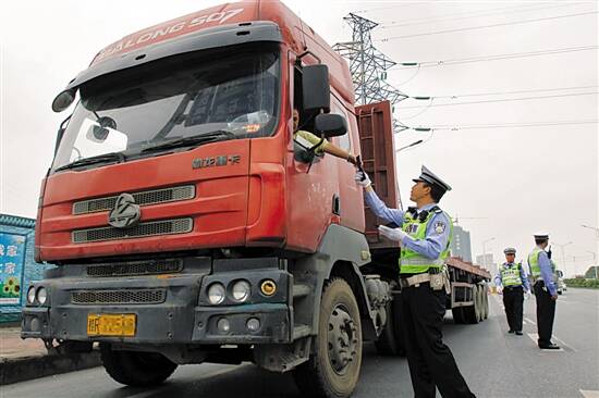 交警对大货车进行检查