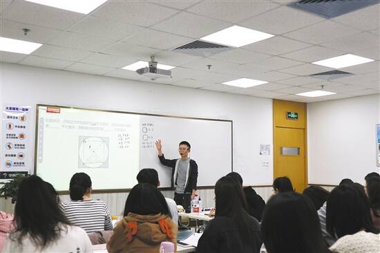学而思广州分校华普教学点的教室外,十几位老师各据一角,或单独面壁念念有词,或对着墙角声情并茂,或两三人聚首小声讨论……气氛稍显紧张,因为随后将进行抽题过关的环节。校长孙凯带领考官坐镇台下,随机抽题听老师讲课。不过关?继续练,直到过关为止。一上午,孙凯听了10个老师的课,过了8个半,“有一个没过,继续练课,另一个板书不行,让他重新写了发微信给我看,最终过关。”这是学而思老师寒假集体备课现场。