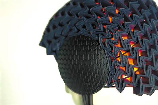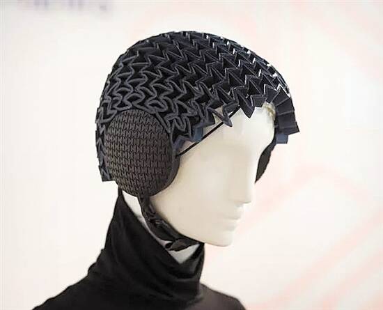 它看上去并无特别,但内里却别有乾坤——它并不是传统中那种坚硬的头盔,相反,它甚至可以折叠起来放进背包里,并不占用太多空间。因为它是用一种定向拉伸材料制成,可随意拉伸。