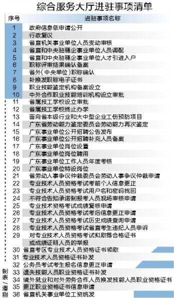 综合服务大厅进驻事项清单