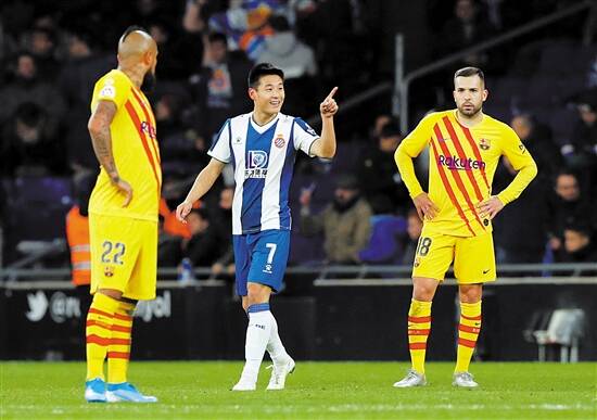 羊城晚报今晨消息 记者刘毅报道:武磊成为第一位攻破巴塞罗那球门的中国球员,创造了历史。今晨在西甲第19轮的巴塞罗那同城德比,“副班长”西班牙人主场以2比2逼平“领头羊”巴塞罗那,武磊在第88分钟攻入扳平比分的进球。
