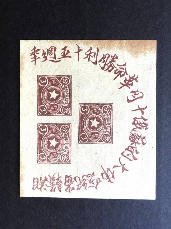 这是一张”湘赣省赤色邮务总局‘红遍全球’邮票发行公告“。翻印的这一《通告》虽是油印,但字迹、附图和局印章十分清晰,这是迄今为止我们所发现的最早和唯一的一张苏区邮票发行公告。通告的发现,不但更正了《中国邮票史》中把这一邮票命名为“红棕色五星图”的错误,应更正为“红遍全球”图。更重要的是揭开了中国解放区邮票中首枚小全张——“湘赣省纪念伟大的苏俄十月革命胜利十五周年”小全张(见题图)的来历和发行时间。以前当此小全张出现时,有人甚至认为是臆造品。它是为“拥援苏维埃政权共贺第三国际万岁”而发行的。这一史实的披露把我国首枚解放区邮票小全张出现的时间提前了15年(以前认为是1947年7月7日发行的“七七抗战十周年纪念”小全张)。
