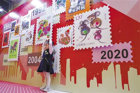 此次活动还设有邮票展览区,不仅有中国生肖邮票全集展览,还展出了第六届邮票设计大赛的获奖作品。此次邮票设计大赛以“灵鼠贺穗”为主题,共收到27696份作品。在专业评审团的筛选下,大赛最终评选出获奖作品400余幅。在今日的邮票首发仪式现场,出席活动的嘉宾也为特等奖、一等奖获得者进行了颁奖。