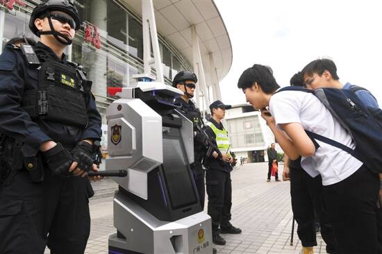 羊城晚报讯 昨日,广州市海珠客运站广场上,一台外形硬朗、正在自主巡逻的警用机器人吸引了不少旅客驻足观看。原来,这台机器人是广州海珠警方春运前夕在海珠客运站投入使用的新一代警用AI-2000机器人“平平警官”,它将协助警方进一步做好2020年春运安保,服务广大旅客。