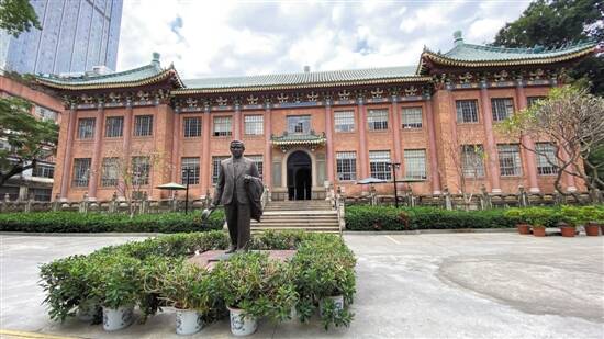 中图“北馆”的主楼与中山先生雕像