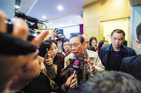 21日,广东省政府新闻办举办新闻发布会,钟南山院士会后回答记者提问 羊城晚报记者 宋金峪 摄