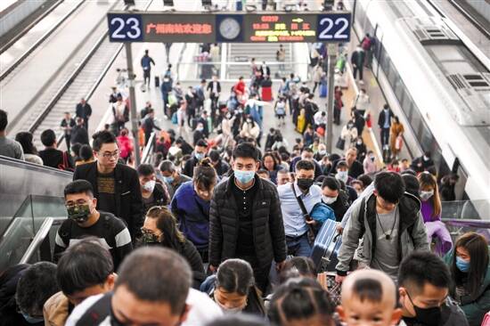昨日,广州南站不少乘客戴上了口罩 羊城晚报记者 周巍 摄