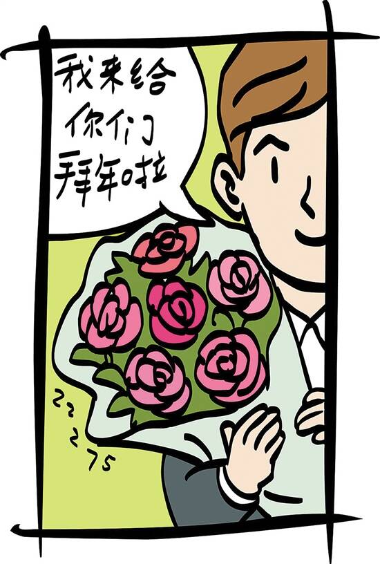 男孩跑上楼,乐呵呵地和女孩父母打招呼:“叔叔阿姨新年好,我来给你们拜年啦。”女孩的父母亲黑沉着脸,没说话。女孩悄声问:“车哪里来的?”男孩说:“买的呀。”