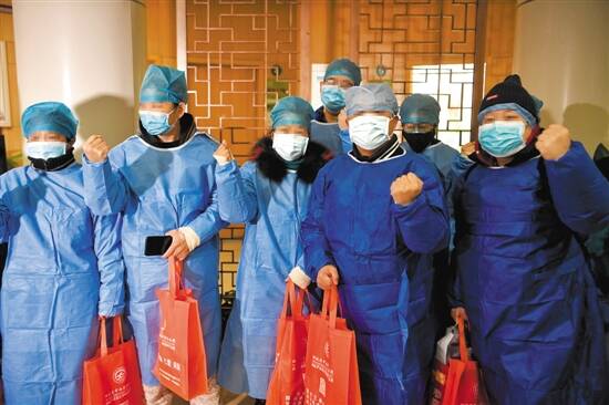 2月6日,湖北省中西医结合医院18名患者集体治愈出院,这是本次疫情发生以来出院人数最多的一次 羊城晚报特派武汉记者 汤铭明 摄