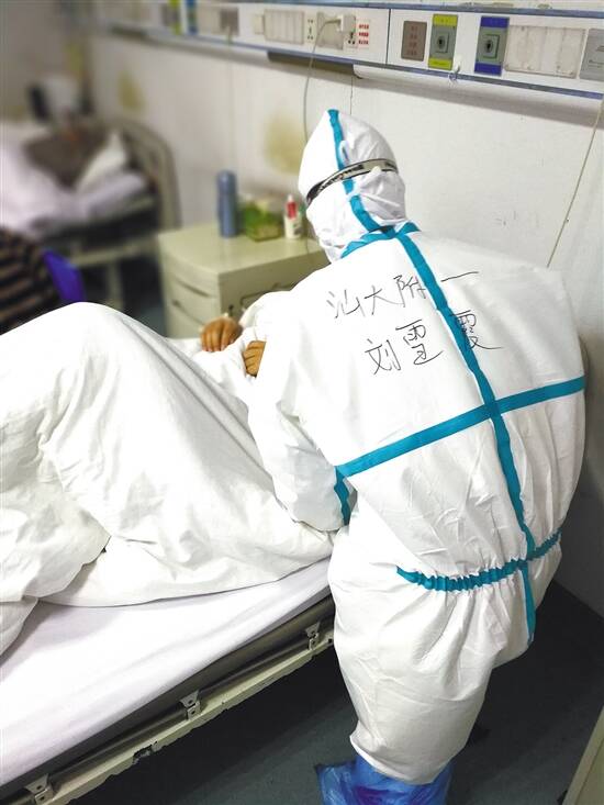 ▲支援湖北的医疗队员刘雪霞正为病患护理