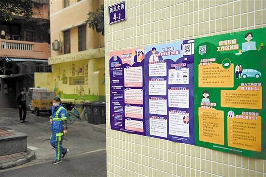 海珠青凤社区挂着防疫宣传横幅和海报 羊城晚报记者 林桂炎 摄