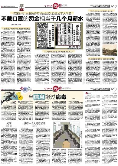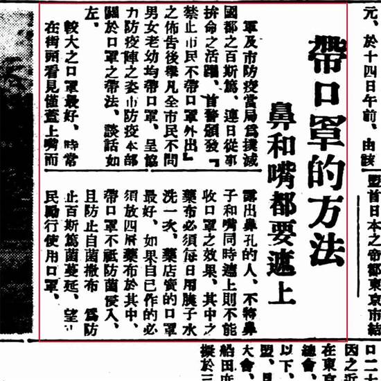 1940年10月23日,东北报刊《大同报》刊登了一条短讯,标题是《口罩药布暴利商店,罚款可充防疫献金》,正文如下: