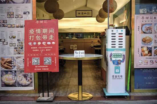 广州海珠区艺苑南路上,部分已营业餐饮店暂停堂食服务 羊城晚报记者 宋金峪 摄