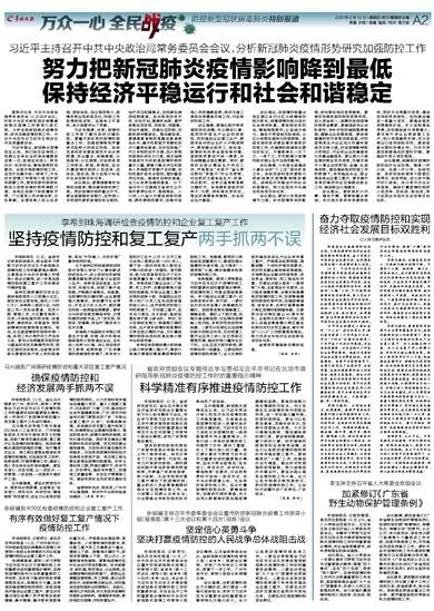 李希强调,要深入贯彻落实习近平总书记关于疫情防控工作的重要讲话和重要指示精神,把疫情防控工作落实落细落具体,有力推动企业复工复产,切实做到两手抓、两不误。一要切实打好应对返粤人流高峰的关键仗,因地制宜制定错峰复工、错峰返程、错时上下班方案,加强交通运输检疫,切实降低疫情输入性风险,有效防范流动的传染源。二要充分发挥社区在疫情防控中的阻击作用,及时把复工复产企业员工纳入社区网格化管理范围,推动防控力量向社区下沉,让社区成为联防联控、群防群治的一线堡垒。三要在做好疫情防控的前提下,全力支持和组织推动各类生产企业有序复工复产,严格落实检测筛查、通勤保障、个体防护等防疫要求,用好用足援企稳岗等政策措施,支持帮助企业解决防疫物资、流动资金、原材料、用工等实际问题。四要坚决服从服务“一国两制”大局,全面落实中央要求,全力服务港澳所需,全情支持港澳做好疫情防控工作,发挥粤港澳联防联控机制作用,加强疫情通报、信息共享,共同打造粤港澳大湾区疫情防控铜墙铁壁。五要抓住经济特区建立40周年契机,全面深化改革扩大开放,笃定心志推进粤港澳大湾区建设和深圳先行示范区建设,牵引带动“1+1+9”工作部署落地落实,努力完成全年经济社会发展各项目标任务。