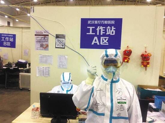 我工作的岗位和患者交流较多,如何和患者打交道,成了我的“必修课”。在方舱医院的患者心态不一样,有的很放松,对前来接受治疗的态度不是很认真;有的很紧张,每做一次检查和治疗,都要“打破砂锅问到底”……无论哪种情况,我都要安抚好他们的情绪,让他们积极认真配合治疗。一位患者阿姨知道我家在广东,是家里唯一的儿子,她还给我加油打气。