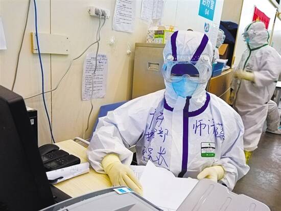 作为一名老党员和领队,我坚持进舱工作,队员都在里面,我必须勇敢面对,在舱内了解工作中存在的问题和护理人员的防护措施落实情况。只要我们所有人的心在一起,我们一起努力,一定可以打赢这场疫情阻击战。