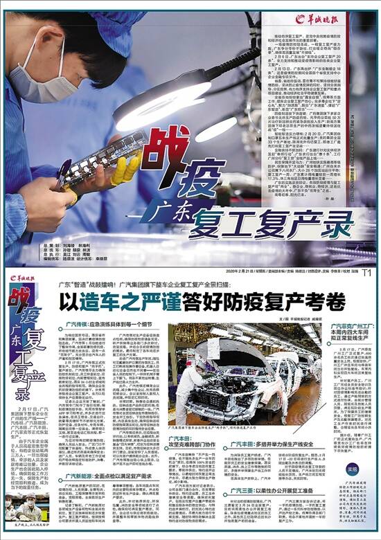 连日来,广东各地全力扶持企业应对疫情挑战、恢复正常生产,在做好疫情防控的前提下稳企业、稳就业、稳经济,改革发展不停步。本报今日推出特刊《战疫——广东复工复产录》,敬请垂注。