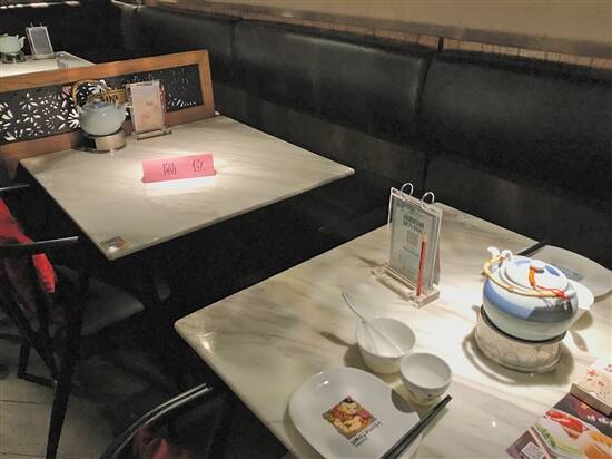 山东老家在一些桌子放上“隔位”标识,以免客人邻桌而坐 宋昀潇 摄