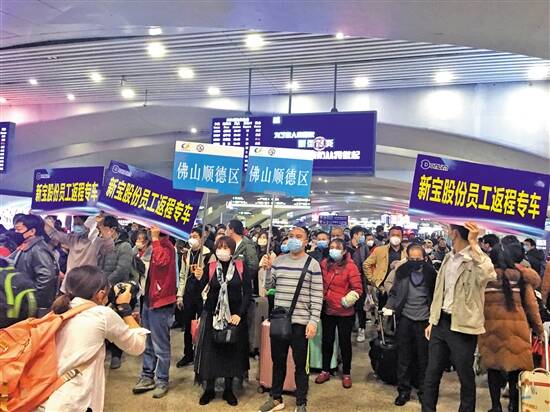 佛山市、区人社部门及企业到广州南站接返岗人员 羊城晚报记者 景瑾瑾 摄