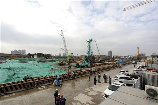 25日,广州如意坊放射线工程工地工人正在施工 羊城晚报记者 梁怿韬 摄