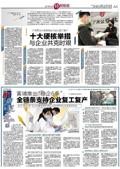 记者了解到,新冠肺炎疫情爆发之后,黄埔区、广州开发区、广州高新区坚持一手抓疫情防控、一手抓经济社会发展,在做好疫情防控的前提下,积极推动企业复工复产,恢复生产生活秩序。