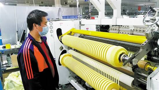 在江门市蓬江区杜阮镇,一卷卷用于防护服生产的防护胶条正在广东盈通新材料有限公司的车间内进行复卷;而在该市江海区,铁金刚机械有限公司生产厂区内正在对数十台用于防护服生产的热风缝口密封机进行最后的调试。防护胶条和热风缝口密封机都是防护服生产的重要原料和生产设备,作为这两种产品的全国重要生产基地,从年初三开始江门就协调各相关企业复工复产。