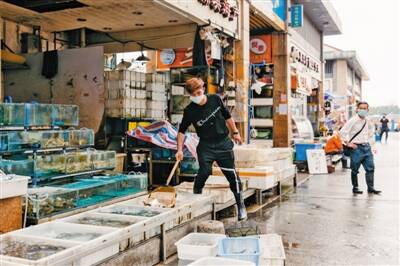 还没走进广州黄沙水产交易市场,腥咸的空气便扑鼻而来。黄沙水产交易市场是华南地区最大的水产品交易市场,占地面积2.6万平方米,有420个档位,疫情发生前这里光是经营人员每天就达到4500人次,人员流动量极大。面对突如其来的疫情,作为广州市民“菜篮子”供给的重要保障,根据“一场一策”的要求,荔湾区要求黄沙水产交易市场在做好防疫工作的前提下继续开市,人流管控理所当然地成为防疫工作的重中之重。