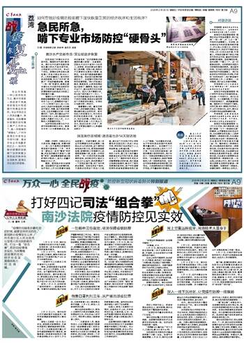 荔湾区市场监督管理局:荔湾区专业市场品类繁多,我们实施“一场一策”,对“三必一急”市场优先保障复工;对涉医、涉农等专业市场积极指导逐步复工,并以线上交易为主;对涉及原材料生产、供应环节等的专业市场,3月1日后主动对接,引导复工;对除涉及影响下游生产服务外的专业市场,督促市场做好疫情防控措施,按疫情的发展,条件成熟一个复工一个。这一切都是动态的,比如前段时间因为华林街突发确诊病例,通过宣传劝导,区内近20家专业市场自发临时性休市或延缓复工。我们也给各专业市场发放4本台账,并派驻“党员突击队”,他们要监督市场的防疫工作、人流情况,一旦有隐患,我们会立刻要求调整。