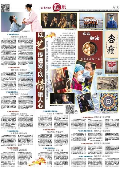 战疫期间,广东文艺家们具体做了什么?羊城晚报记者近日逐一采访了12个省级文艺家协会及省文艺志愿者协会,展现全省各艺术门类的创作者热火朝天文艺战疫的景象。