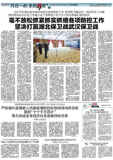 习近平指出,这次疫情,短期内会给湖北经济社会发展带来阵痛,但不会影响经济稳中向好、长期向好的基本面。要在加强防控的前提下,采取差异化策略,适时启动分区分级、分类分时、有条件的复工复产。要落实落细国家出台的一系列支持政策,有针对性地开展援企、稳岗、扩就业等工作,强化“六稳”举措,统筹抓好春耕生产、农民就业增收等工作,坚决抓好脱贫攻坚各项任务。中央和国家机关各部委要继续加大对湖北的支持力度,帮助湖北解决实际困难和具体问题,早日全面步入正常轨道。