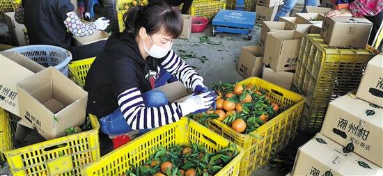 饶平县地处广东省潮州市东部,东邻福建省,南濒南海,自然生态环境丰富多样,是潮州柑的主产区之一。当地有果园3.2万亩,今年产潮州柑约7.5万吨。往年,大量潮州柑会被发往海南、北京、沈阳、湖北等地,尤其在荆州特别受欢迎,往往在年前就销售一空。