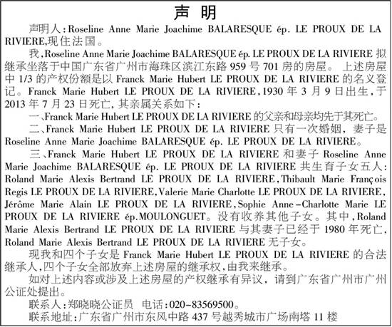 遗失声明:广州荣祥医疗设备有限公司遗失营业执照正副本,统一社会信用代码91440101088036074T;遗失财务专用章,现声明作废。