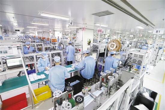 比亚迪目前共有100多条口罩生产线,日产能达500万只 羊城晚报记者 王磊 摄