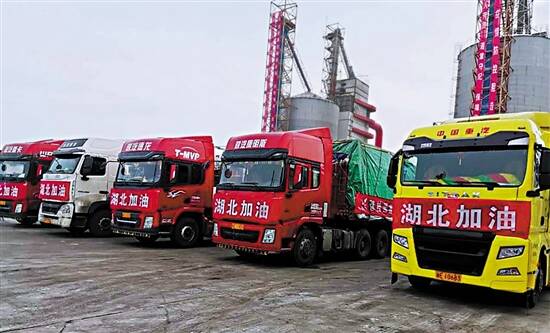 紧接着,2月21日,又一批满载240吨农产品的14辆大货车分别从广东、河北、河南、江西、内蒙古等地出发,再次驰援湖北。