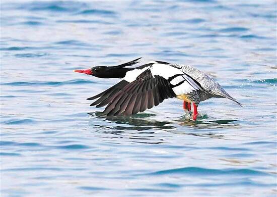 中华秋沙鸭是中国特有的一种珍稀鸟类,为冰河时代(一千多万年前)的“幸存者”,全球不到2000只,数量比大熊猫还稀少,被誉为“水上飞羽大熊猫”。现为国家一级重点保护野生动物,列入世界自然保护联盟2012年濒危物种红色名录。