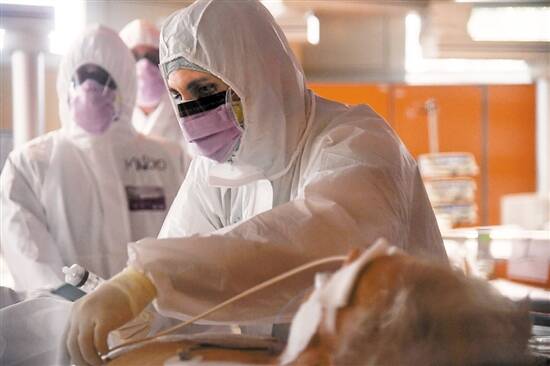 25日,在意大利罗马收治新冠肺炎患者的卡萨帕洛科临床研究所,医护人员在重症病房工作 新华社 发