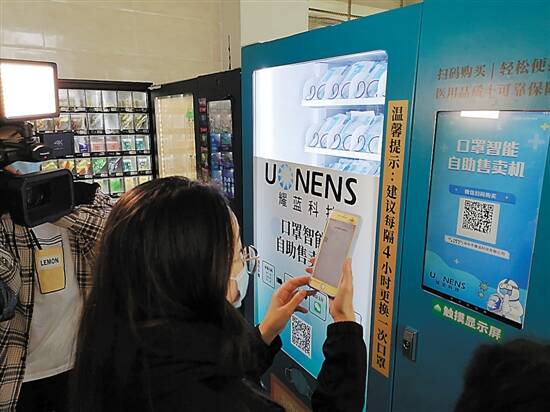 羊城晚报讯 记者郭起摄影报道:在深圳,买口罩可以像下楼买饮料一样轻松。一款口罩智能管理系统出现在深圳南山的一些社区、写字楼,市民用手机扫码即可自助购买口罩(见上图)。通过口罩智能投放箱,市民扫码投递使用完的口罩,还能获得下次购买口罩的优惠奖励。据开发方、深圳市耀蓝科技有限公司介绍,其研发的“口罩智能管理系统”能够实现从口罩销售、投放全流程管理。耀蓝科技有限公司总经理叶惠琳表示,基于云计算+物联网技术的“口罩智能管理系统”包括口罩智能售卖机和口罩智能投放箱,软件包括市民可使用的小程序以及后台管理系统。口罩智能售卖机显示屏内有二维码,用户通过小程序扫码即可进行注册和购买。售卖机内存放的均是一次性医用外科口罩,由符合资质的厂商专供。售卖机还具有GPS定位功能,用户可通过小程序搜索附近的售卖机。