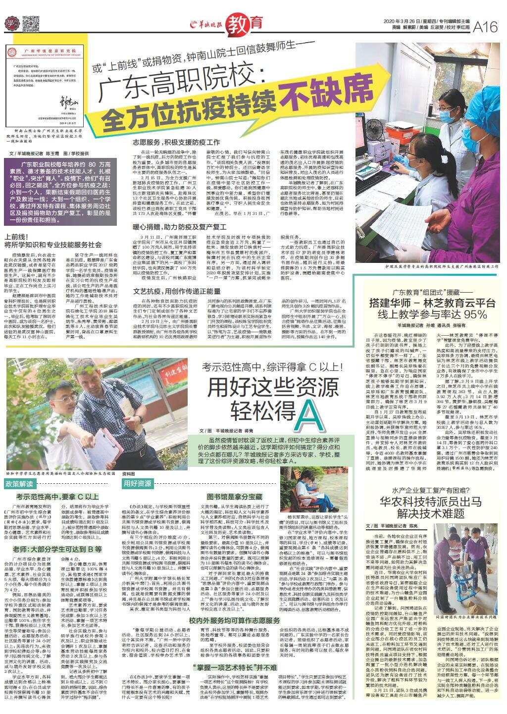 广东高职院校:全方位抗疫持续不缺席