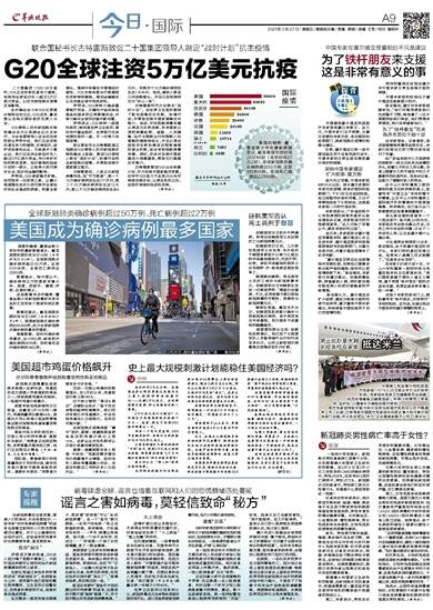 G20领导人应对新冠肺炎特别峰会当天以视频会议方式举行。与会各国领导人在会后发表的联合声明中说,我们正在采取迅速且有力的措施,支持经济,保护劳动者和企业,尤其是中小微企业;我们正在向全球经济注入超过5万亿美元资金,作为有针对性的财政政策、经济措施和担保计划的一部分,以抵消大流行病对社会、经济和金融的影响。