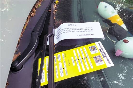 记者细看发现,停在该处的车辆的确有部分挡风玻璃和雨刮处堆积较多树叶,说明已停放在此较长时间。这些疑似“僵尸车”的挡风玻璃雨刮处,还放置了广州市市政设施收费处的“温馨提示”和“广州泊车”自主停车缴费流程图。根据“温馨提示”,广州市提醒目前停放在即将收费的路边停车位的车辆,4月1日后将按“先停车、后付费”的模式收费,并提示车主要规范停车、合理使用、自觉缴费。
