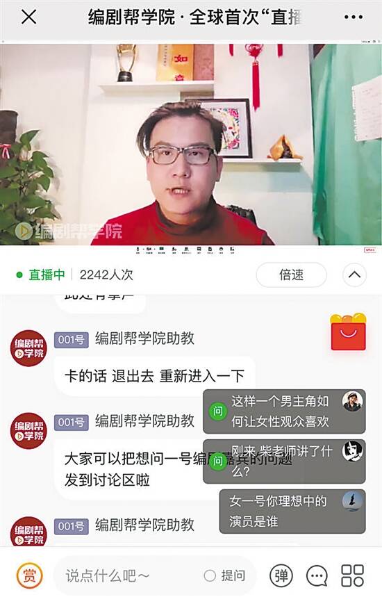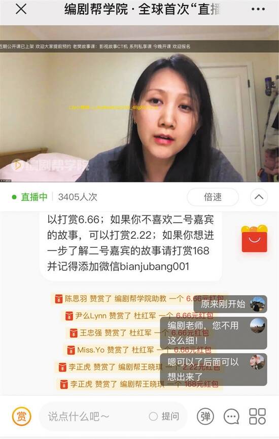 杜红军:会持续下去。直播技术已经发展到了一个非常完备的阶段。更关键的是,线上直播成本低,又增加了互动,每一期直播之后或许都会诞生新的火花和方向,比如我们以后还想做直播编剧写大纲、直播开项目会,等等。知名编剧也会参与进来,譬如他们可以组成“专业围观嘉宾团”,对新编剧的本子进行点评。