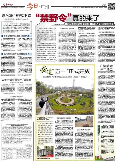 白云山—麓湖—越秀山连通工程(简称云道)6.2公里主体工程将于“五一”正式开放。届时市民可以步行从中山纪念堂、越秀公园、花果山到达麓湖,未来更可直达广州花园、白云山。此外,白云山去年至今拆除违法建设和影响景观建设51.05万平方米,已完工的新门岗也已亮相。