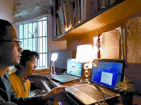 钟月和杨光培,也是同个学校建筑工程学院的夫妻教师,承担了三门网课教学,同时家里还有两个小学生要上网课,很多时候,工作时间与陪伴孩子的时间重叠了,夫妻俩不得不错峰工作,常常等孩子睡着后,熬夜到凌晨2-3点甚至是通宵。