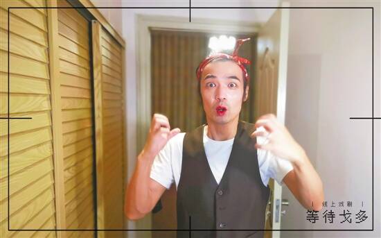 从前,演员通宵排练,吃在剧场、睡在剧场,剧场成了家;此次,线上戏剧《等待戈多》里,创作、排练全在家中进行,让家成为了剧场。线上版《等待戈多》改变了演员对于表演空间的理解——把家当舞台,化生活空间为演出空间:演员家里的卧室、客厅、厨房、大门,甚至是楼道,都成为了舞台;舞美道具则是各种快递箱,由演员亲手搭建“剧场”、布置道具、拍摄表演……