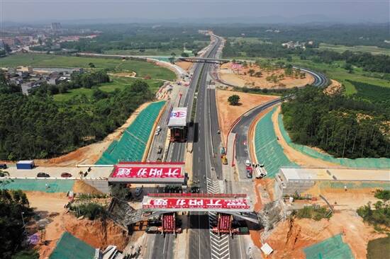 羊城晚报讯 记者王丹阳,通讯员沈高、黄海敏摄影报道:4月15日上午,广东在建最大的高速改扩建项目开阳高速改扩建再传复工复产捷报。该项目运用SPMT模块智能移运技术,在全国首次实施高速天桥同步拆除与搭建:在3小时内迅速实现拆除2座旧天桥,架设2座新天桥(见图)。这也是去年广东高速工程首次应用SPMT技术拆除天桥后的又一创新突破。